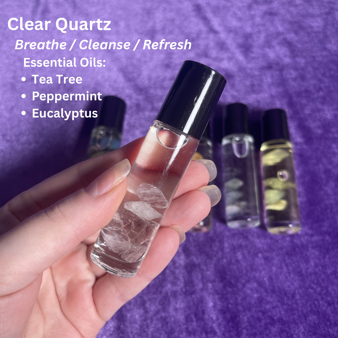 A curated collection of crystal-infused essential oil rollers designed for everyday wellness, intention setting, and self-care rituals. Each roll-on is crafted with organic fractionated coconut oil, genuine crystals, and a thoughtfully balanced essential oil blend.