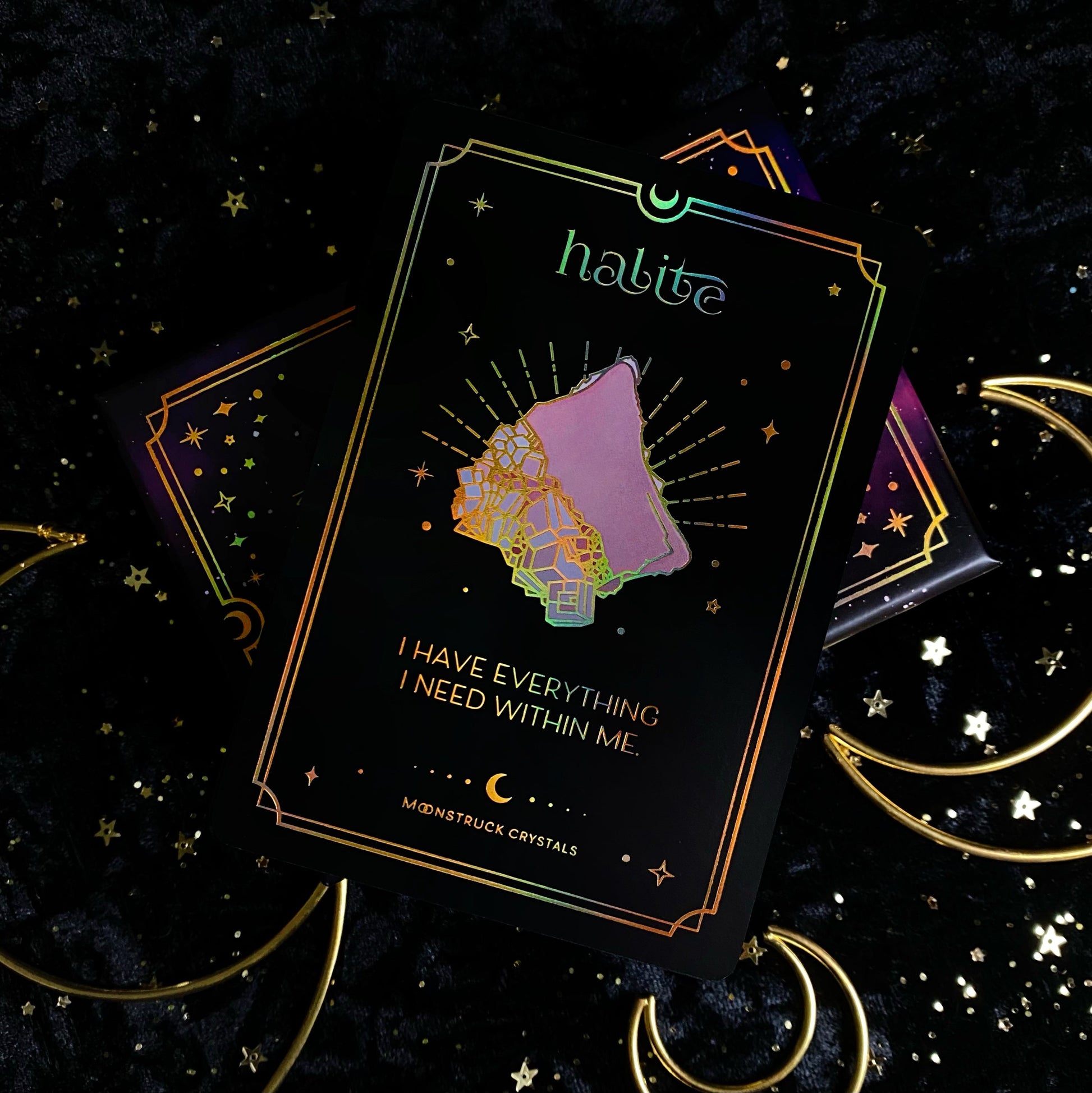includes set of 60 crystal affirmation cards in a box + crystal properties booklet.