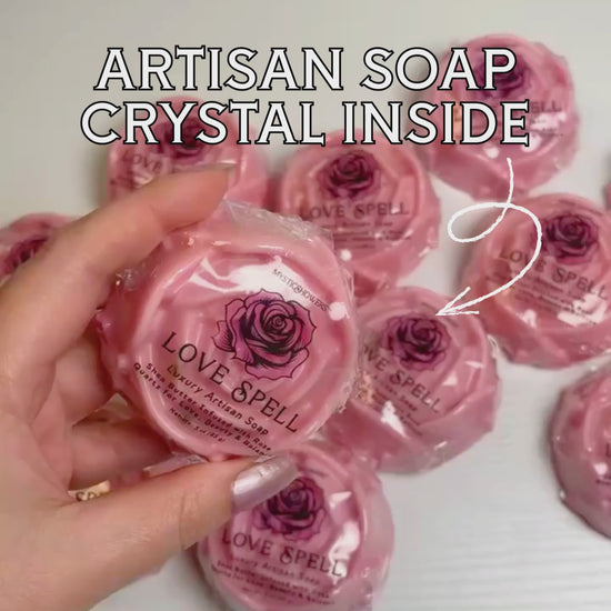 Inside each soap hides a 1.2" polished Rose Quartz heart crystal, waiting to be revealed as you bathe. Once the soap is finished, you’re left with a beautiful keepsake crystal — perfect for carrying in your pocket, placing on your altar, or using in self-love rituals.