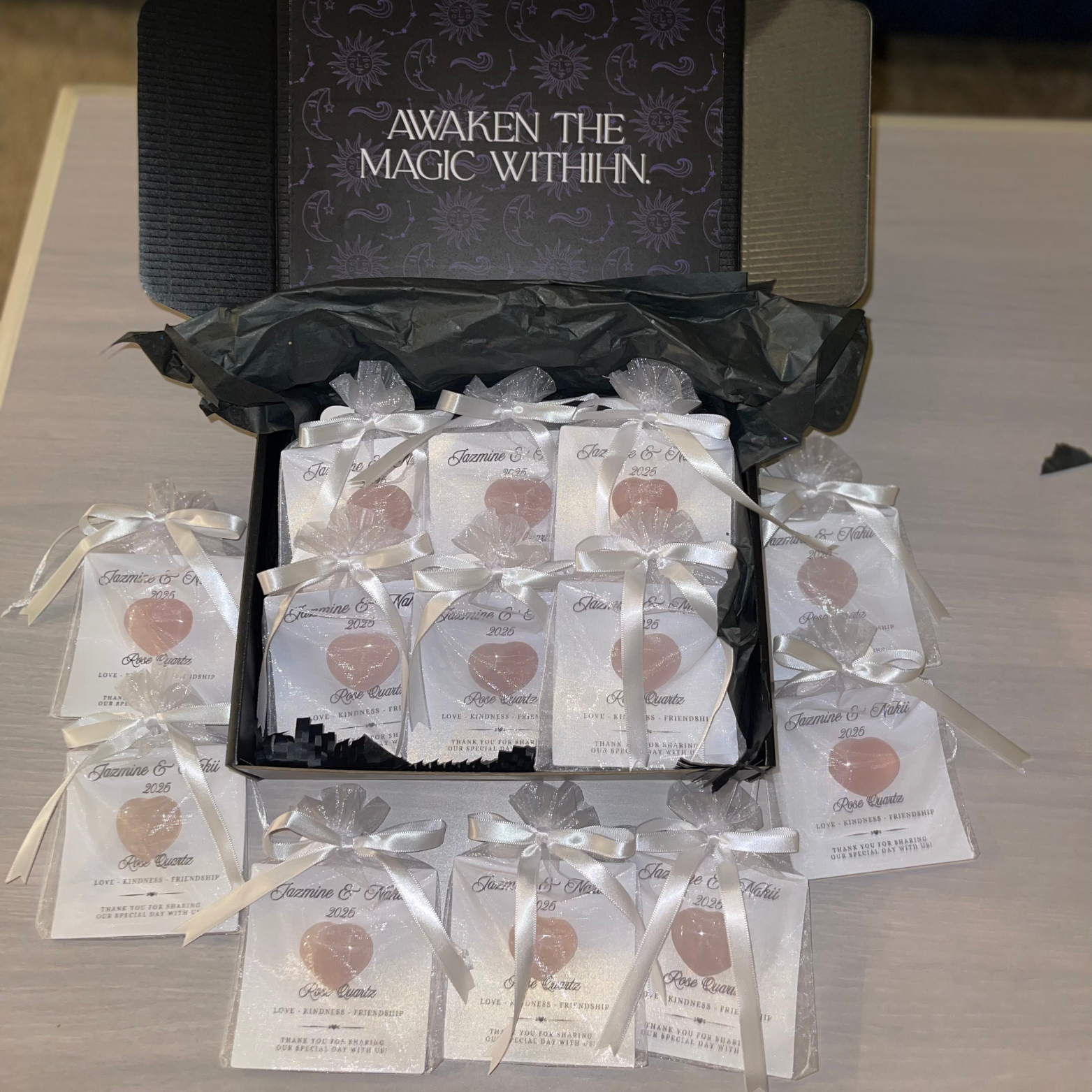 Custom Rose Quartz Crystal Heart Favors: Keepsake Gift